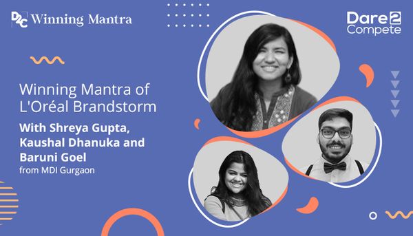 In order to give the new batch of B-School students an insight to corporate competitions and to make their campus life a lot more interesting, Unstop (formerly Dare2Compete)launched an all-new initiative – D2C Winning Mantras, an endeavour to ignite the spirit of competitiveness. We are reaching out to winners of corporate competitions and sharing their message and strategy with you. Today we are in a conversation with Shreya Gupta, Kaushal Dhanuka and Baruni Goel from MDI Gurgaon, the Winners of L'Oréal Brandstorm.