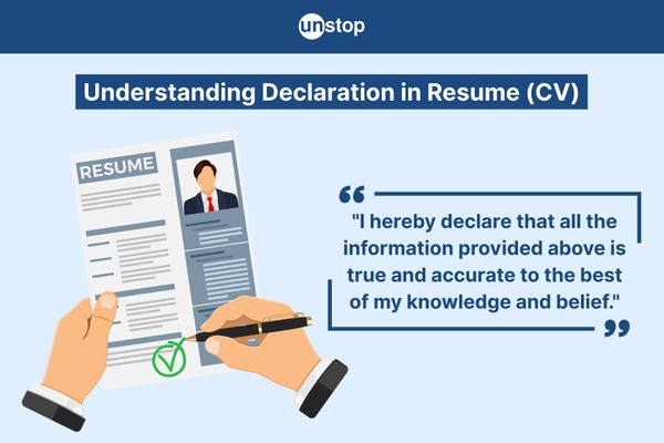 There's no single standard format for a resume declaration. Whether you're a fresher or an experienced professional, the core statement remains consistent, and it generally doesn't change based on the job profile.