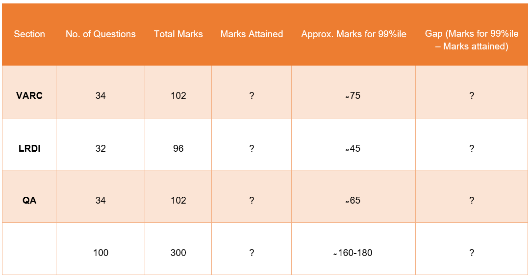 Here is the trick: Once you take mock and get the scores, retake the exam without looking at the solution. See which all questions were correct, correct but a fluke, attempted but wrong, and the ones you did not attempt at all. This is your real knowledge. Note down the scores, and try to fill this gap to make 99+ percentile.