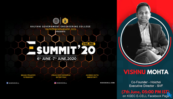 So do not miss this golden opportunity as KGEC E-Cell gives you the chance to interact with him in their flagship event, E-Summit 2020 on 7th June, 5 pm onwards. Show your present online to be a part of the first-ever online E–Summit and get a chance to hear Mr Vishnu Mohta live.