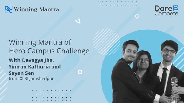 A series curated to give the incoming batch of students an idea of what the corporate realm holds for them, Unstop (formerly Dare2Compete)launched an all-new initiative - Winning Mantras, an endeavour to ignite the spirit of competitiveness. Unstop (formerly Dare2Compete)picked the winning teams of top 15 corporate competitions and interacted with them to capture the countless stories that have left an indelible mark on their lives. In this chapter of D2C Winning Mantras, we conversed with the National Winners of Hero Campus Challenge (B-Track) - Devagya Jha, Simran Kathuria and Sayan Sen from XLRI Jamshedpur to learn more about their secret mantra of winning!