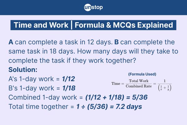 The formula for time and work together is based on the principle that the rates at which individuals work are additive. Here's the formula: