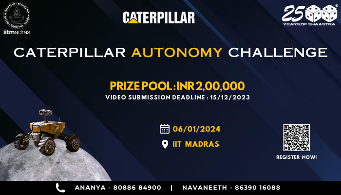 Welcome to the Caterpillar Autonomy Challenge! In this edition of 2024, we focus on autonomous capabilities and picking skills of robots designed for space exploration. Participant’s creations should resemble rovers but need not use space-grade components. This competition lays the foundation by assessing the robot’s ability to navigate and pick objects independently. In upcoming editions, we aspire to elevate the challenge by introducing tasks like sand drilling and mining. Join us in pushing the boundaries of space robotics. Refer to the problem statement for further details.