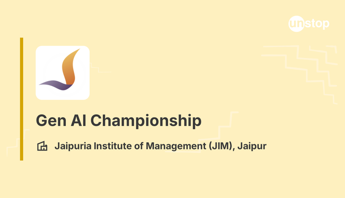 - Jaipuria Institute of Management, Jaipur presents the GenAI Championship 2026, a national-level competition designed to simulate a real-world startup journey powered entirely by Generative AI. Participants work on a single product idea across four progressive rounds, moving from problem discovery to live prototype development.