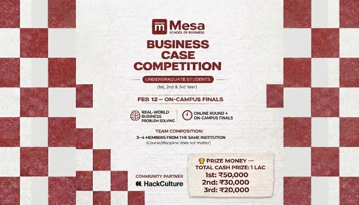 Mesa School of Business presents the MESA Business Case Competition 2026 (Undergraduate Edition). The competition is designed to assess how undergraduate students analyse business situations, prioritise actions, and communicate decisions clearly.