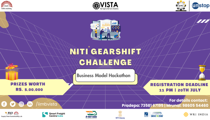 NITI Aayog, Smart Freight Centre India, Drive to Zero, and WRI India, in collaboration with the Operations Management Club of IIM Bangalore and OpRaizen, Vista's annual flagship event, invite students, academicians, researchers, businesses, entrepreneurs, and MSMEs to join this mega-innovative business model hackathon.