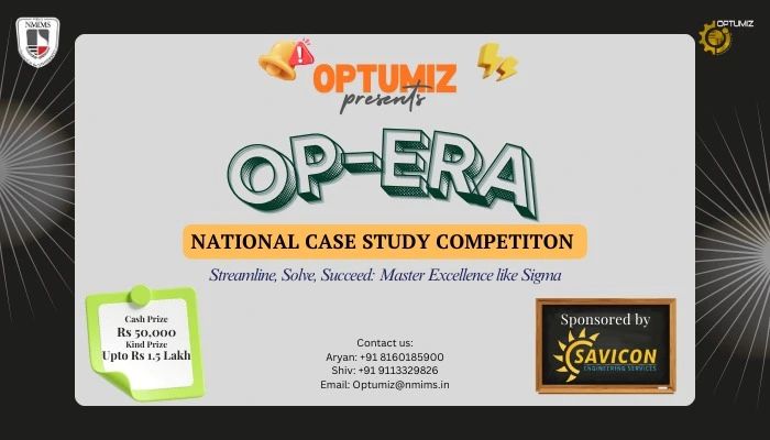 Optumiz, the Operations and Supply Chain Cell of SBM, NMIMS Mumbai, in collaboration with Savicon Engineering Services, is thrilled to announce Op-Era 2026, the national-level case competition! This year, we bring you a challenge centered around Lean Six Sigma, Optimization, and Quality Management, where your ability to think critically, strategize effectively, and execute seamlessly will be put to the ultimate test.