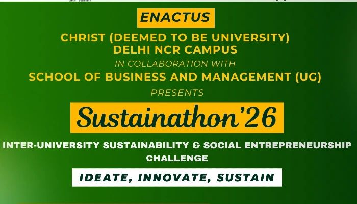 Sustainathon’25 is an inter-university sustainability and social entrepreneurship challenge organised by ENACTUS Christ at CHRIST (Deemed to be University), Delhi NCR Campus.