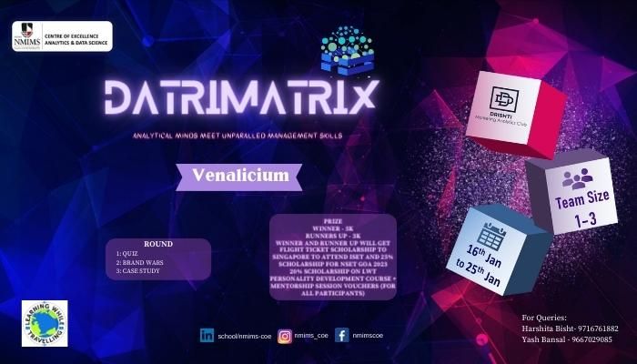 - Round 1: Quiz: An Analytics quiz round with 15 questions in 10 mins. Out of the total number of teams that participated, 20 teams will be shortlisted for the next round.