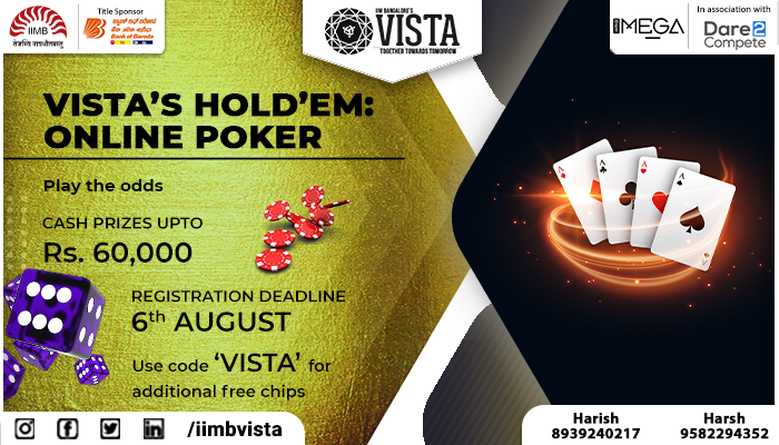 IIM Bangalore’s International Business Summit Vista 2021, in association with event sponsor Get Mega, presents Vista’s Hold’em: Online Poker.