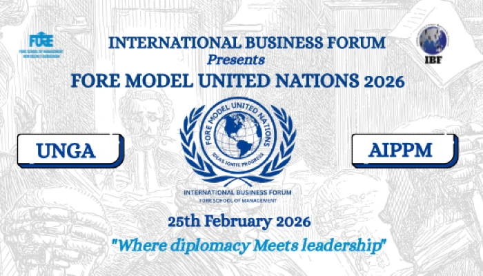 Team IBF of FORE School of Management is thrilled to present FORE MUN 2026 an unparalleled platform for future leaders and global thinkers. This dynamic 1-day event invites participants to step into the shoes of United Nations delegates, representing assigned countries to tackle some of the world’s most pressing challenges. With an emphasis on debate, collaboration, and diplomacy, participants will engage in meaningful dialogue, negotiate solutions, and draft impactful resolutions, all while experiencing the authentic workings of a United Nations committee.