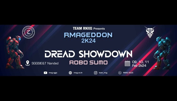 Welcome to RMAGEDDON Dread Showdown 2k24! This is a robot sumo competition. It's a place buzzing with innovation, where powerful robots go head-to-head in an exciting showdown. Get ready for an amazing display of advanced technology, clever strategies, and the quest for mastering skills. it's a strategic competition that showcases the latest in technology. In this competition, robots will go head-to-head, aiming to force their opponents out of the arena. Imagine the intense battles and the impressive skills of these robots that will defeat the opponent's robot in the battleground. As the competition unfolds, only one robot will emerge as the "Champion of Robosumo." Who will come out on top? Join us at RMAGEDDON Robosumo 2k24 for an exhilarating experience and witness the evolution of technology in action!