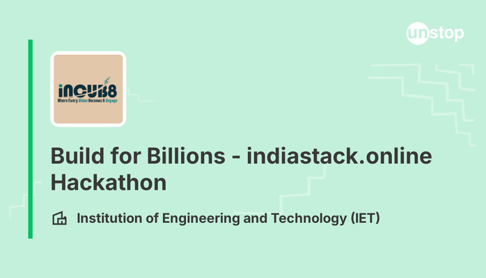 Build for Billions - indiastack.online Hackathon is a national-level, 24-hour software hackathon designed to bring together the brightest minds from across the country to innovate, collaborate, and shape the future of technology. It is organised by IET NITK and Indiastack.Online under the umbrella of Incub8 2025.