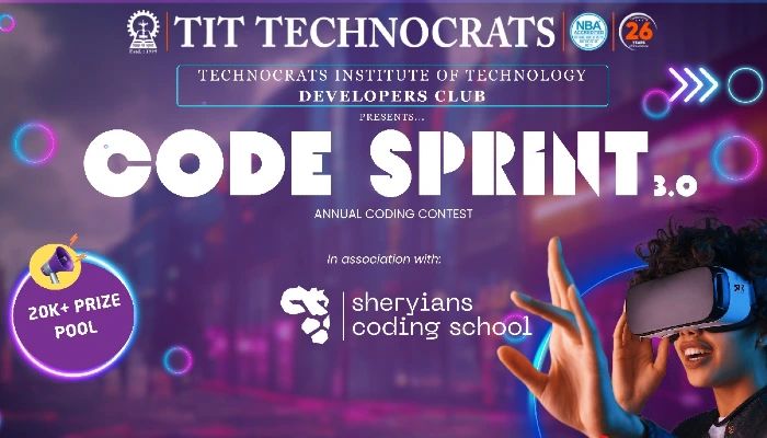 CodeSprint 3.0 is the flagship competitive Coding Contest organized by the Developer’s Club in association with Sheryians Coding School — one of the leading coding institutes in Central India, at Technocrats Institute of Technology (TIT), Bhopal, MP