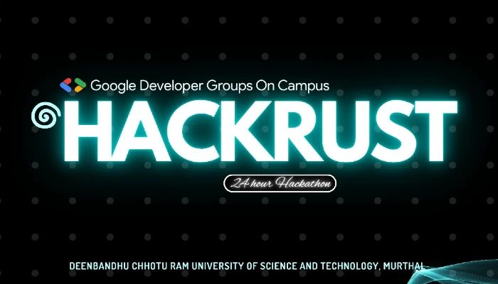 - HackRust 1.0 is a flagship 24-hour hackathon organized by Google Developer Groups On Campus, DCRUST (Deenbandhu Chhotu Ram University of Science & Technology, Murthal).