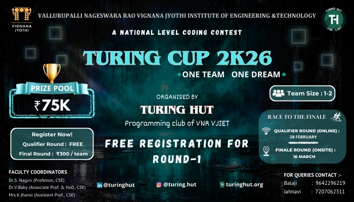 Turing Cup is a prestigious coding competition organized by Turing Hut, the competitive programming club of VNRVJIET.