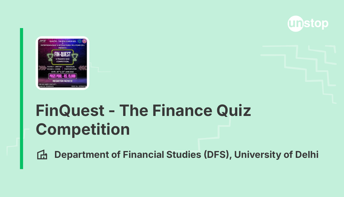Crafted for aspiring professionals and passionate quizheads alike, FinQuest is a pan-India Finance Quiz Competition that tests not just your textbook knowledge, but your real-world awareness, logical thinking, and strategic speed. Whether you're eyeing a career in investment banking, consulting, fintech, or just love competing with the best, FinQuest offers a national stage to prove your mettle.Organised by Quanti-Fi – The BFSI Club and the Entrepreneurship & International Relations Cell of the Department of Financial Studies, University of Delhi, FinQuest is designed to test your conceptual clarity, speed, and awareness in the ever-evolving world of finance.